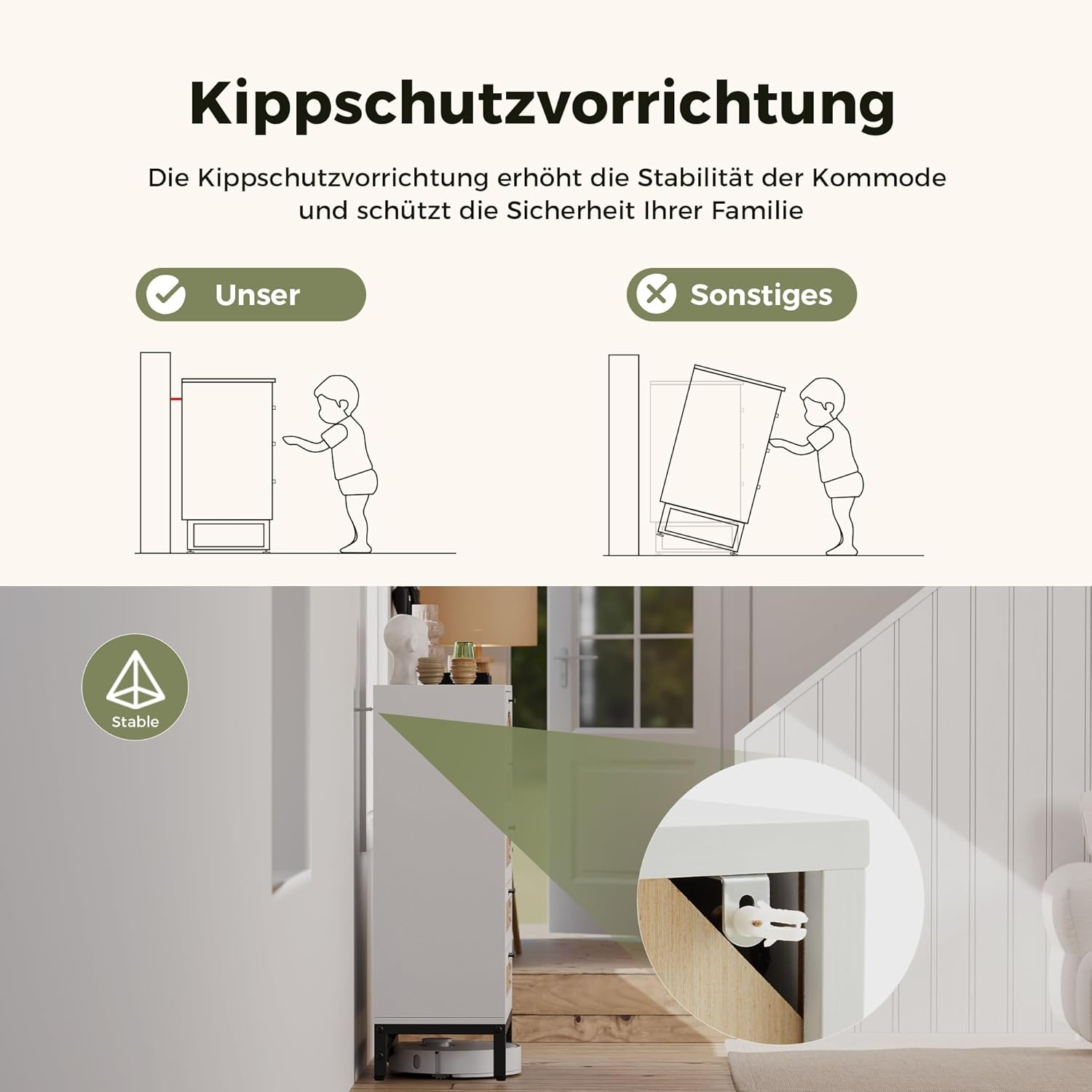 Kompaktowe wymiary komody czynią ją idealnym rozwiązaniem do małych pomieszczeń. 6 pojemnych szuflad i szeroka powierzchnia blatu zapewniają optymalne wykorzystanie przestrzeni, umożliwiając przechowywanie różnych przedmiotów.