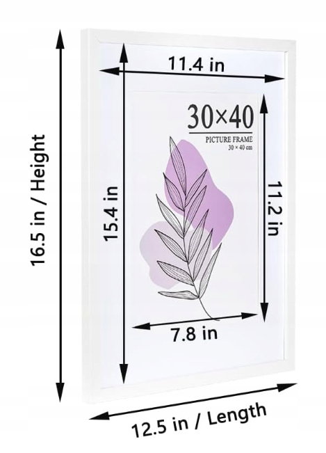 Biała ramka 30 × 40 cm ze szkłem akrylowym do montażu na ścianie