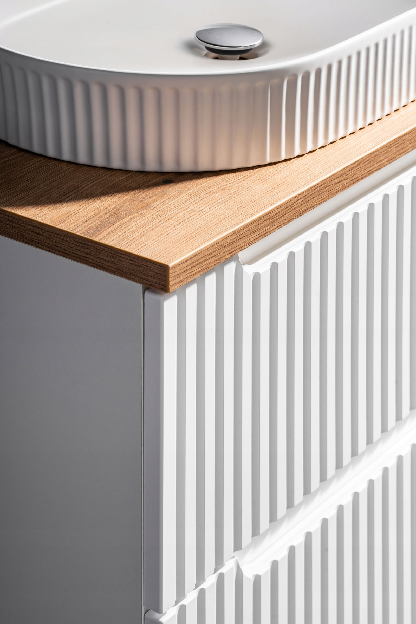BIAŁA ryflowana szafka pod umywalkę 80 cm NOVA WHITE 82-80-2S z szufladami