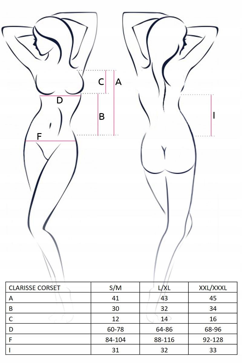 Gorset dostępny w dwóch wersjach kolorystycznych - beżu i czerni - wykonany z delikatnej, elastycznej satyny, tiulu oraz eleganckiej koronki, która ukazuje kształtne atuty każdej kobiety. Dołączone do gorsetu stringi idealnie dopełniają całość bielizny jednocześnie podkreślając jej nietypowy, wyjątkowo seksowny charakter.