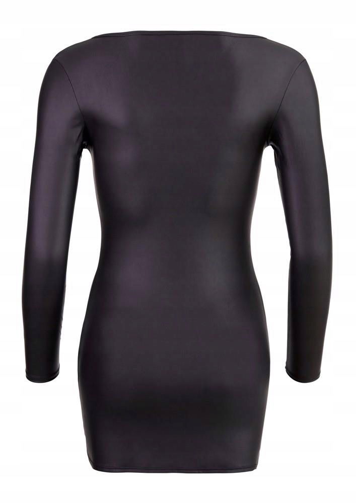 Czarna krótka sukienka Cottelli PARTY z długim rękawem zachwyca obcisłym krojem, który podkreśla kobiece krągłości w zgrabny i ekscytujący sposób, jak również dużym dekoltem i błyszczącym brokatowym zamkiem błyskawicznym z przodu.