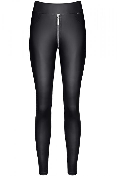 Wykonane z wetlook'a 360 stopni: Materiał jest miły w dotyku, a przede wszystkim elastyczny i rozciąga się w każdym kierunku. Te cechy powodują, że spodnie są wygodne i doskonale dopasowują się do ciała ukazując smukły kształt nóg. Dają poczucie 2-giej skóry.