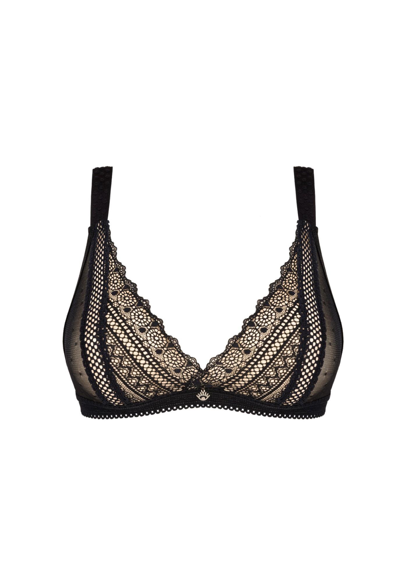 - trójkątne, miękkie miseczki – podkreślone piersi i dekolt
