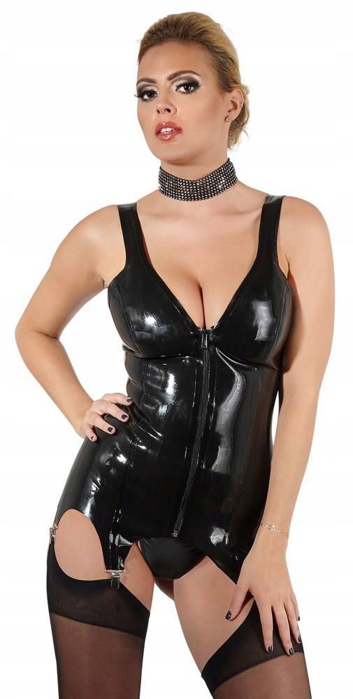 Ta dopasowana lateksowa koszulka na szelkach z pełnym zamkiem z przodu i 4 szelkami pięknie układa się na kobiecych krągłościach i sprawia, że wyglądają gorąco do ugryzienia!