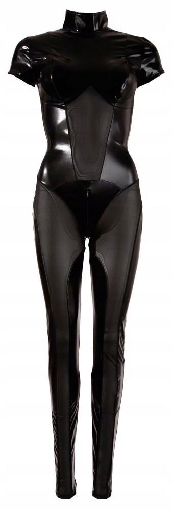 W czarnym błyszczącym wetlook z przemyślanymi wstawkami z siatki power mesh. Bardzo erotyczne są suwaki nad sutkami i w kroku. Łatwe zakładanie i zdejmowanie dzięki długiemu, ukrytemu suwakowi od szyi do tyłka.