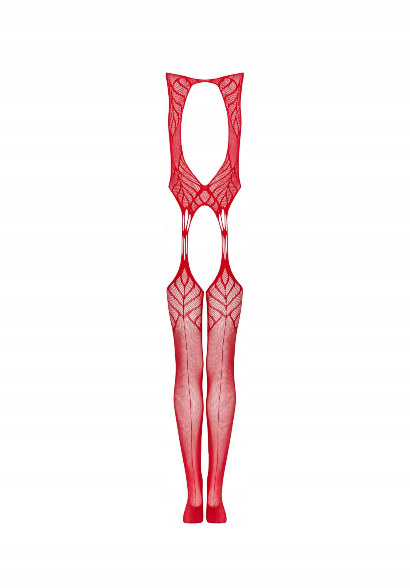 Szukasz ognistej kreacji na wieczór we dwoje? Bodystocking N122 na pewno Cię nie zawiedzie! Niezawodny, wysokiej jakości materiał, oryginalny wzór i bardzo seksowny krój rozpieszczą Twoje zmysły! Poznaj więcej szczegółów:- bodystocking N122 w czerwonym kolorze- góra połączona cienkimi paskami z pończochami- geometryczny wzór – oryginalny wygląd- piękny design na plecach – okrągłe wycięcie- elastyczny i miły materiał (90% nylon, 10% elastan)