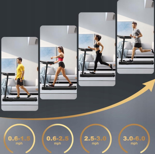 - ✴️Składana bieżnia do użytku domowego: Z biegiem czasu zwiększone tarcie bieżni może powodować większy hałas lub przeciążenie silnika. Zaleca się nałożenie nakładki na bieżnię oleju silikonowego, aby zapewnić płynniejszą pracę bieżni. Lekkie drgania bieżni są normalne. Dla optymalnego komfortu biegu można ją wyregulować zgodnie z instrukcją. Bieżnia składana. Maksymalne obciążenie bieżni: 100 kg.