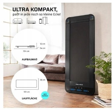 - Pomysłowa konstrukcja oraz nowoczesny wygląd sprawiają iż bieżnia pasuje niemal do każdego mieszkania oraz biura .