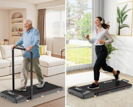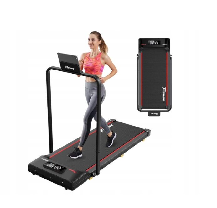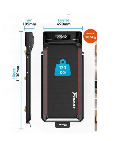 - ✴️ Kompaktowa, ultrapłaska i niewymagająca montażu – zaledwie 10,5 cm wysokości, z kółkami transportowymi. Nie wymaga montażu. Wystarczy schować pod sofą, łóżkiem lub biurkiem – prawdziwie składana bieżnia do małych mieszkań.