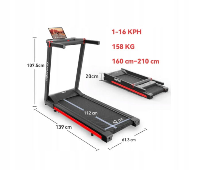 Bieżnia składana DeerRun A1 Pro Smart z nachyleniem 6% - 16 km/h, 158 kg