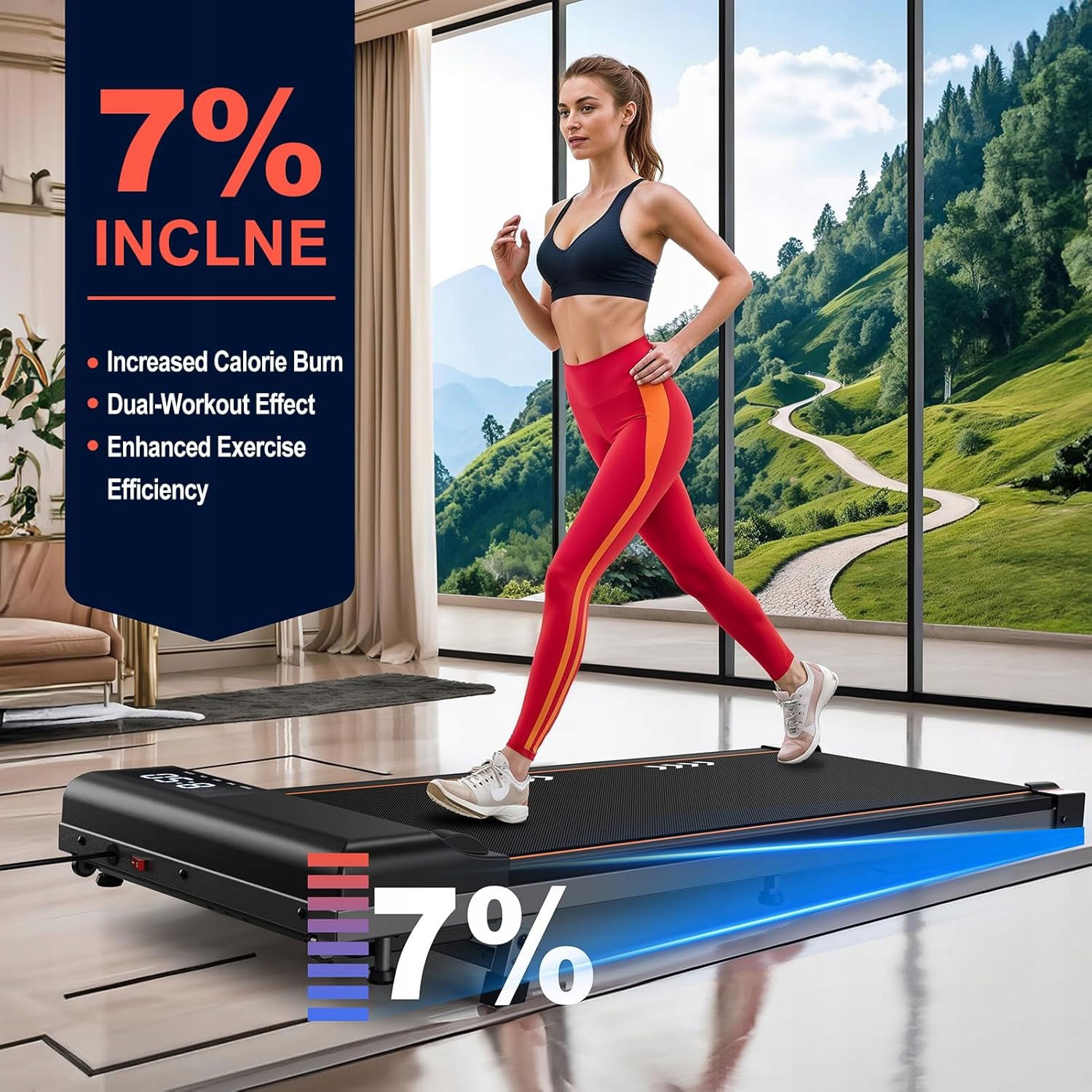 ✅ Funkcje: Amortyzacja uderzeń, Kompaktowa konstrukcja, Pochłanianie wstrząsów, Przenośny, Ręczne nachylenie, bieżnia do domu