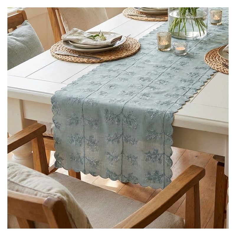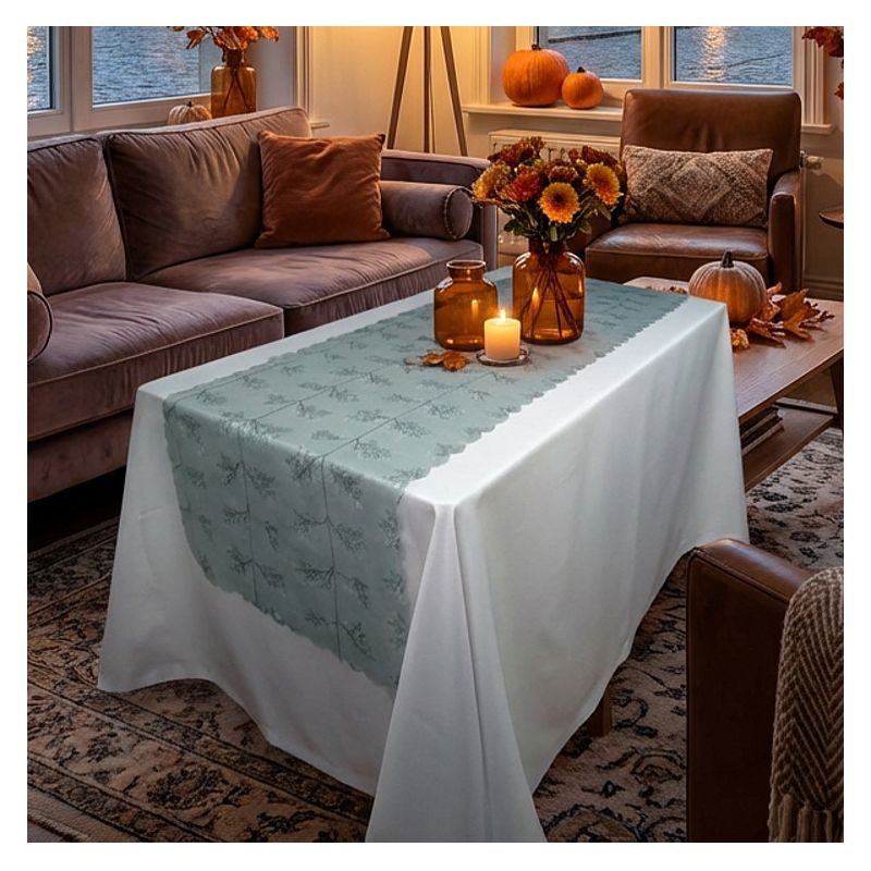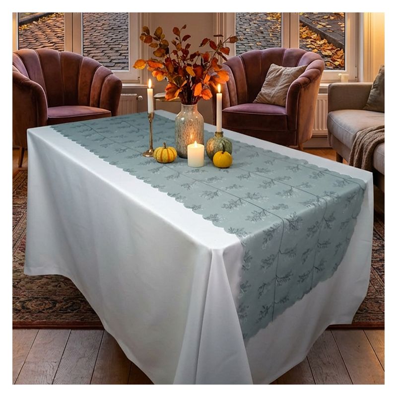 Prostokątny bieżnik z tkaniny poliestrowej łatwo utrzymać w czystości, co czyni go praktycznym wyborem na dekorację Twojego stołu lub ławy.