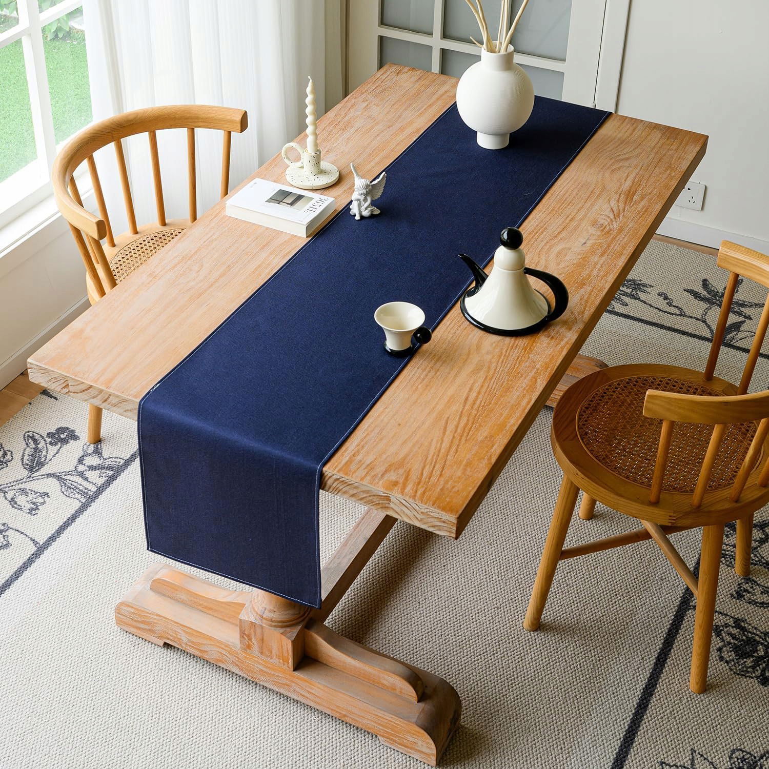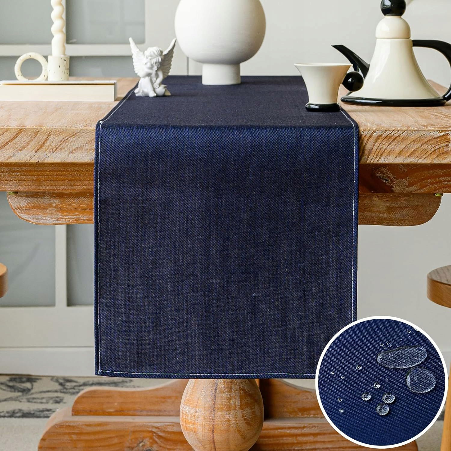 Bieżnik Vorysum Blue Modern, wodoodporny len, nadający się do prania, dekoracyjny obrus na zewnątrz, lato, do ogrodu, na wesele, do jadalni, na przyjęcie, na święta (granatowy, 33 x 183 cm)