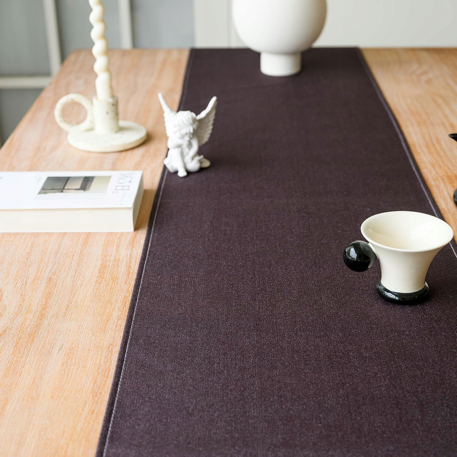 Bieżnik stołowy Vorysum, nowoczesny, wodoodporny, lniany, zmywalny, dekoracyjny obrus, na zewnątrz, do ogrodu, na wesele, do jadalni, na imprezę, na święta (brązowy, 33 x 183 cm)