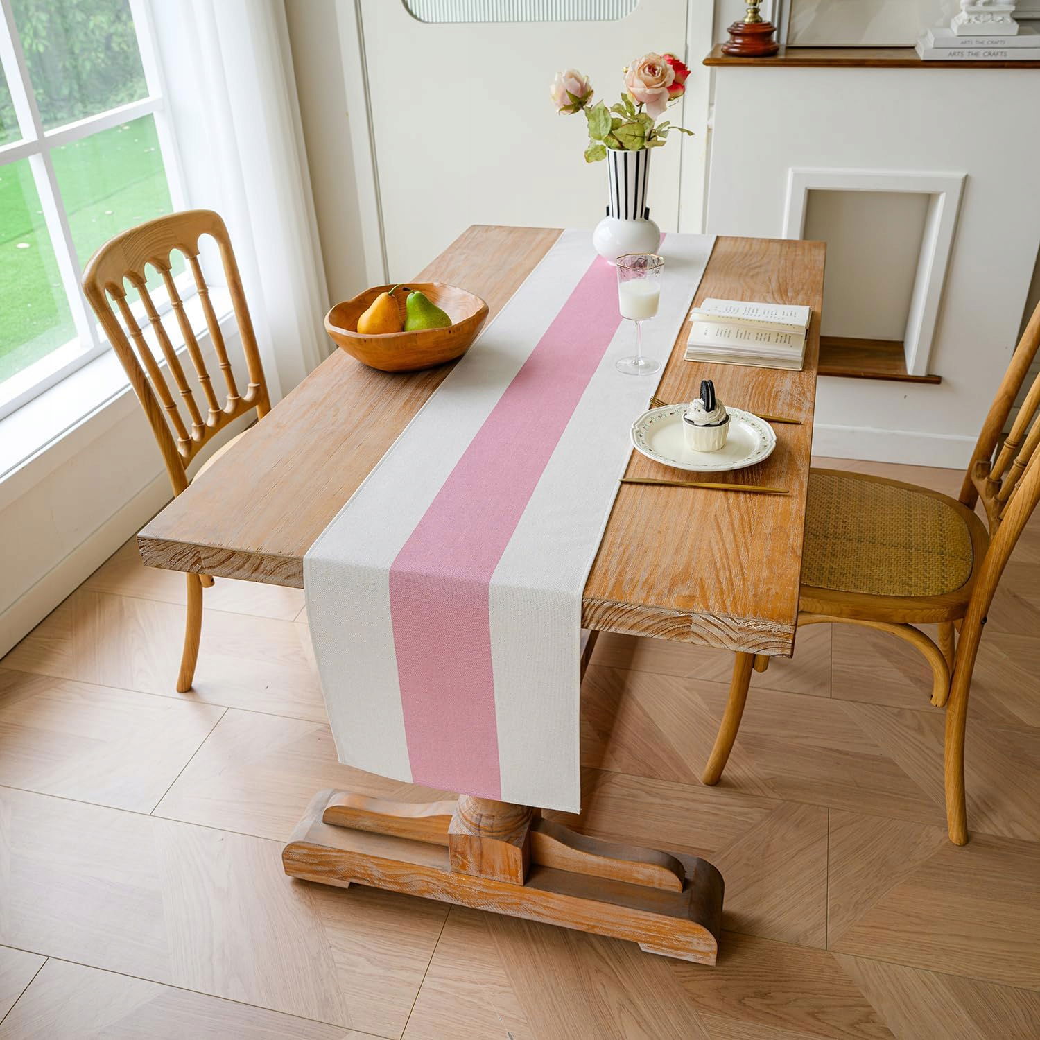 Bieżnik stołowy Vorysum, nowoczesny, dekoracyjny, wodoodporny, lniany, zmywalny, na zewnątrz, do ogrodu, na wesele, do jadalni, na imprezę, na święta (różowy, 33 x 120 cm)