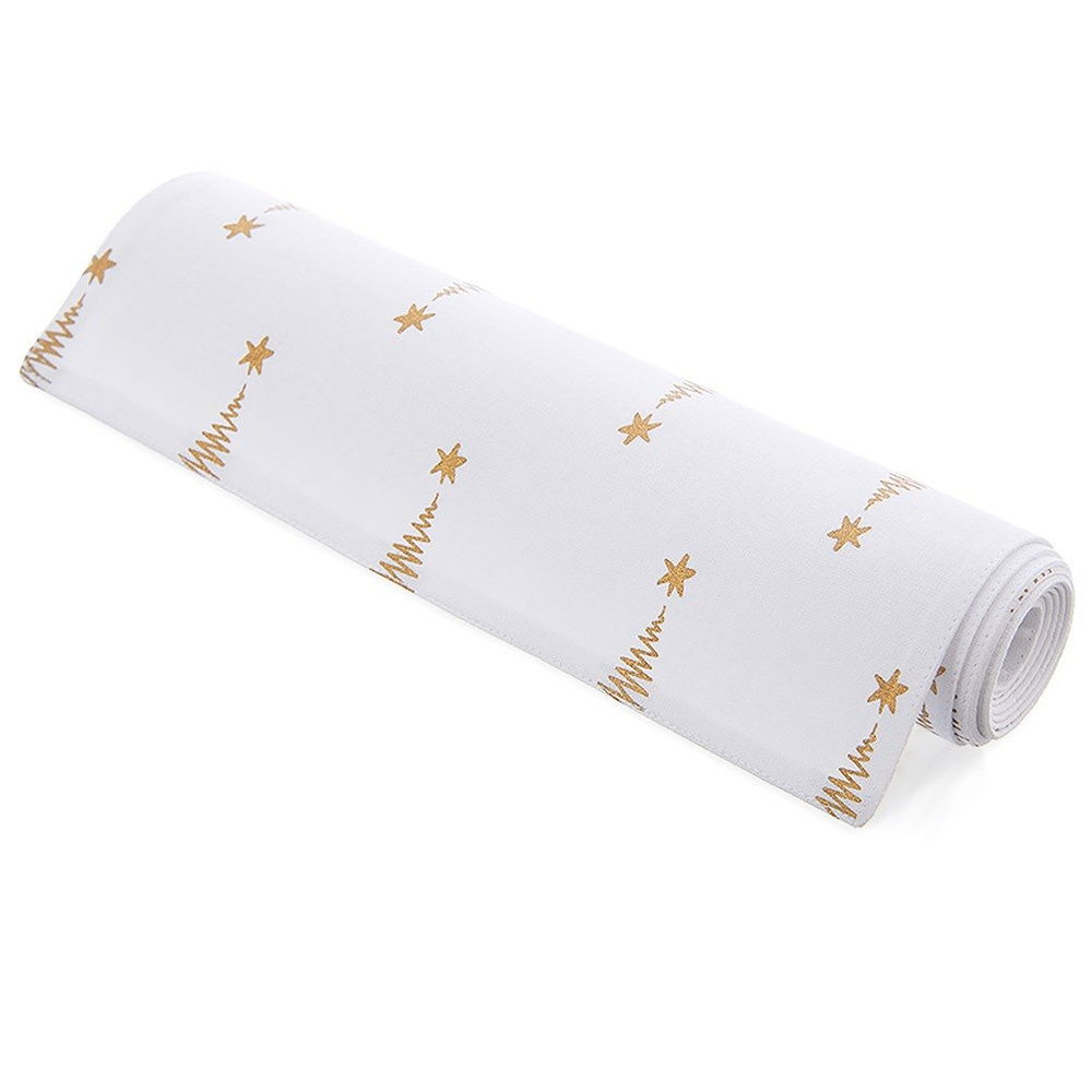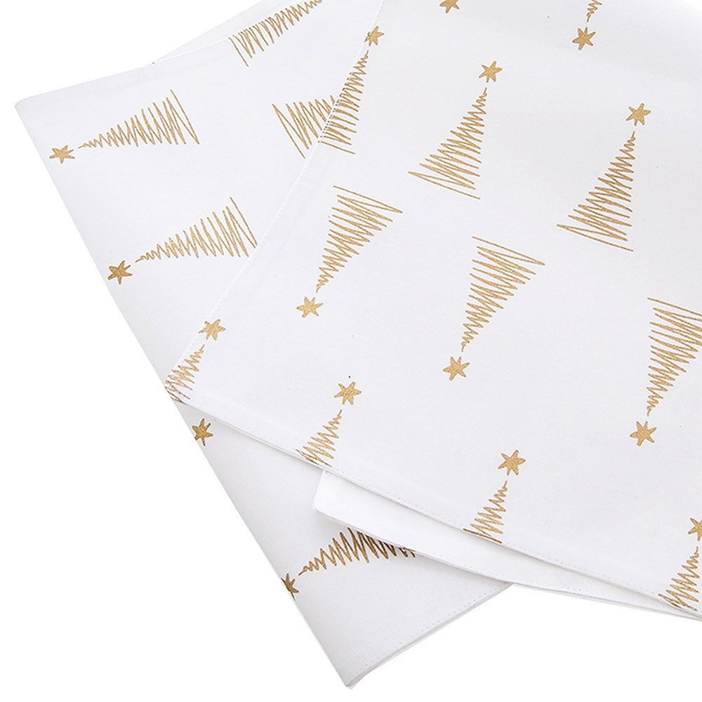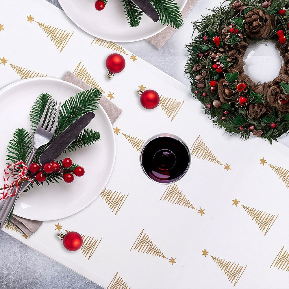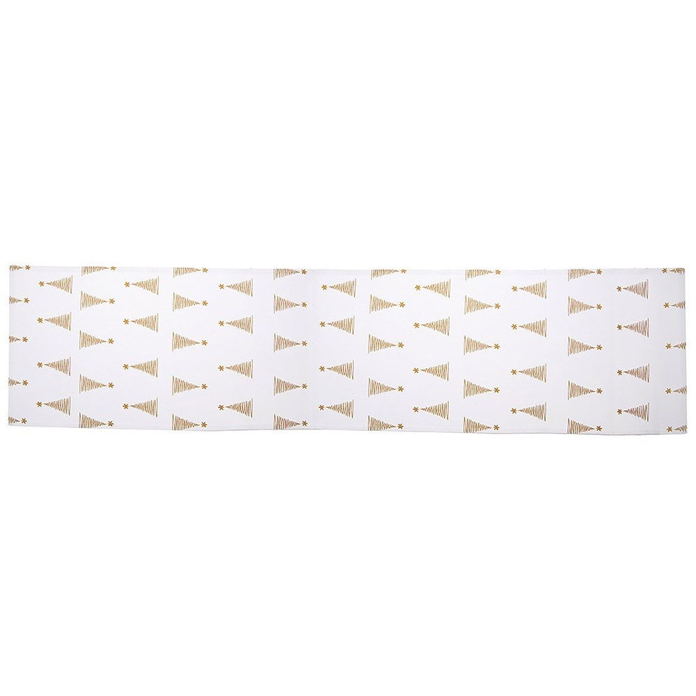 Wykonany z bawełny - Bieżnik wykonany ze 100% bawełny w białym kolorze z efektownym dekorem w postaci złotych choinek.