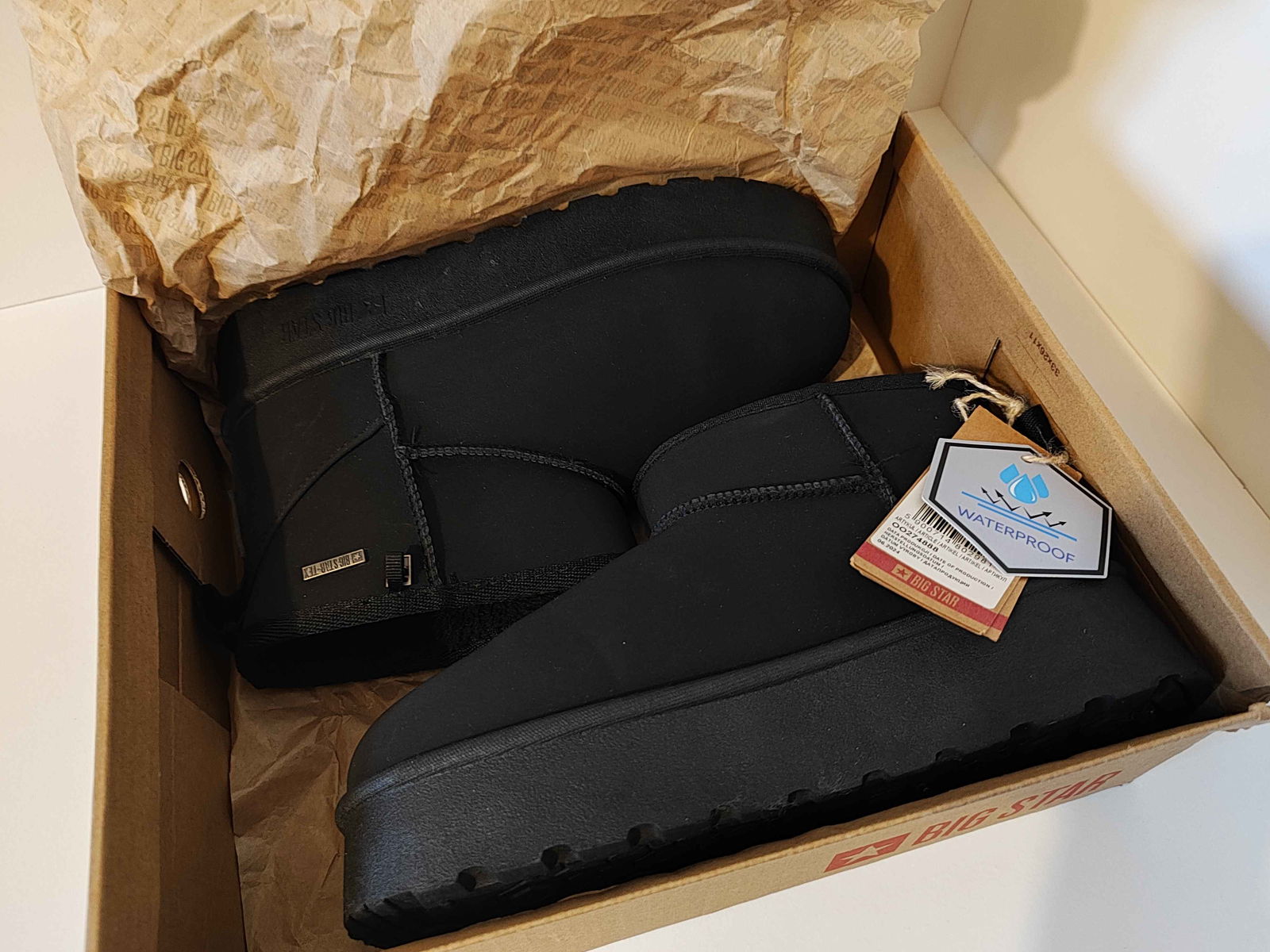 Big Star Shoes Botki Śniegowce Czarne Damskie Wsuwane Z Futerkiem 38