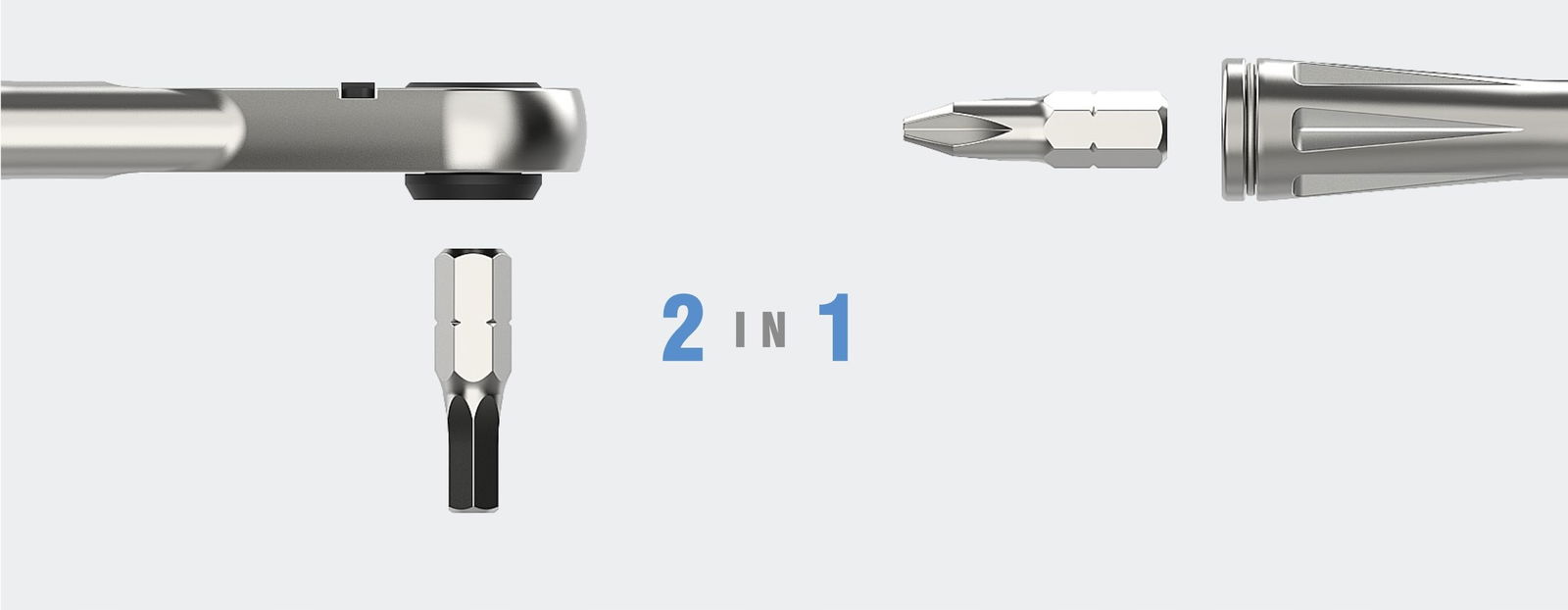 GRZECHOTKA, A NIE MULTITOOL. Zamiast męczyć się z niewygodnym, składanym narzędziem, dostajesz prawdziwą, dwukierunkową grzechotkę (72 zęby!). Dzięki niej wkręcanie i odkręcanie jest szybkie i płynne. I to w ciasnych miejscach!