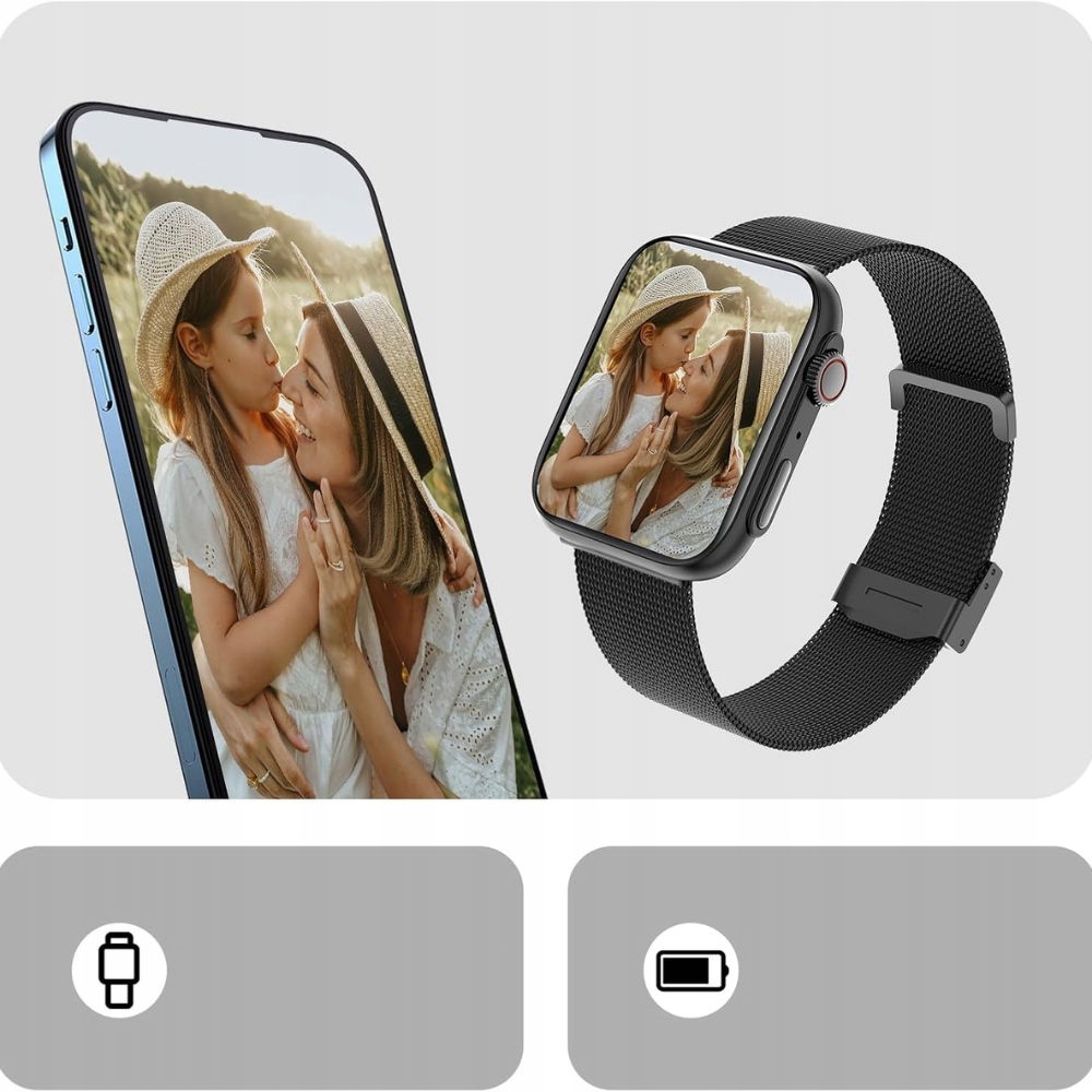 - Funkcje komunikacji:Odbieranie i wykonywanie połączeń przez BluetoothPowiadomienia z aplikacji (Facebook, WhatsApp, Instagram, SMS)