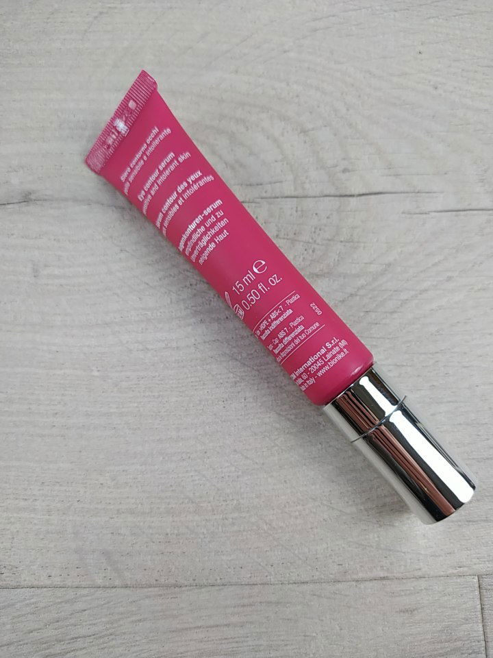 Globalne działanie na wszystkie oznaki starzenia się skóry wokół oczu (zmarszczki, worki i cienie pod oczami).