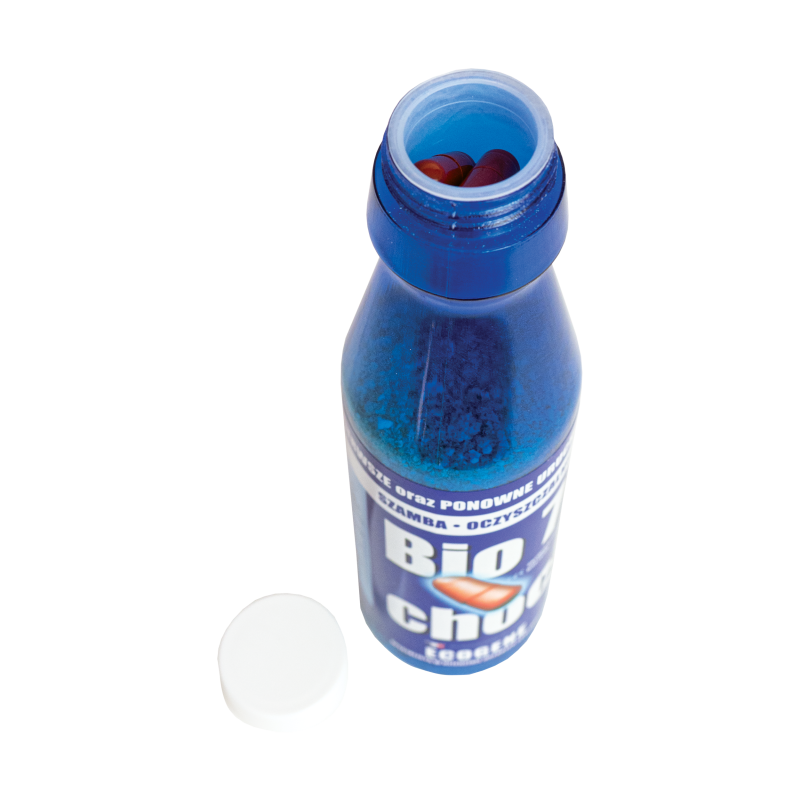 Wsypać do WC i spłukać dawkę biopreparatu.
