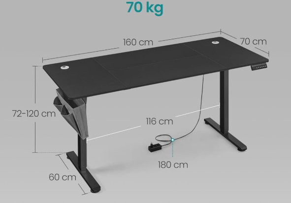 Biurko elektryczne z regulacją wysokości, 160 x 70 cm SONGMICS LSD136BZ01
