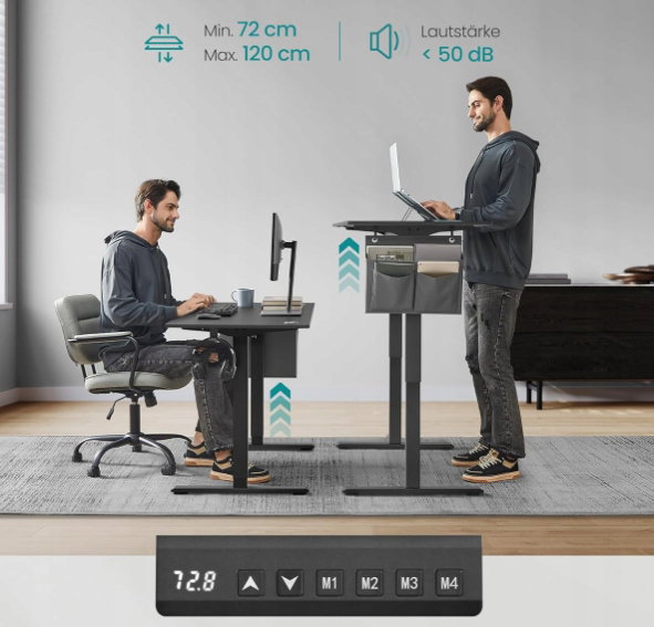 - ✴️Wspiera zdrową postawę: regulowana wysokość w zakresie od 72 do 120 cm pozwala na pracę na zmianę w pozycji siedzącej i stojącej; ponadto stół umożliwia zapisanie łącznie 4 ustawień wysokości, co ułatwia dostęp do nich.
