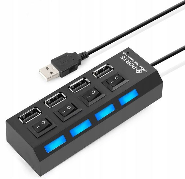 HUB USB: 4 wejścia USB z diodami. teraz nie zabraknie Ci wolnych miejsc USB