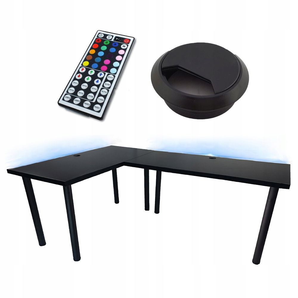 Biurko zostało wyposażone w designerską taśmę LED, która prezentuje się niezwykle estetycznie dzięki wpuszczeniu bezpośrednio w blat. LEDY posiadają aż 16 kolorów i 4 efekty świetlne do wyboru! W zestawie otrzymasz pilot do zdalnego sterowania kolorami. Dodatkowo taśma jest wodoodporna - o nic nie musisz się martwić!