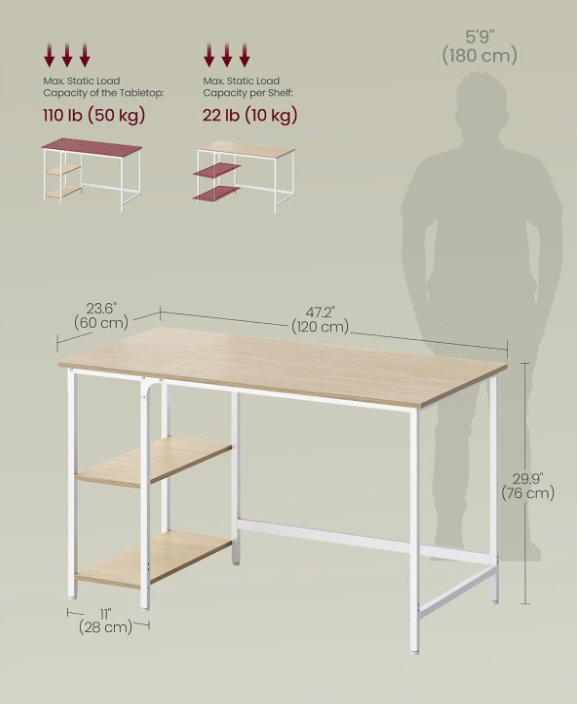 Biurko komputerowe, 120 x 60 x 76 cm VASAGLE LWD047N02 USZKODZONY