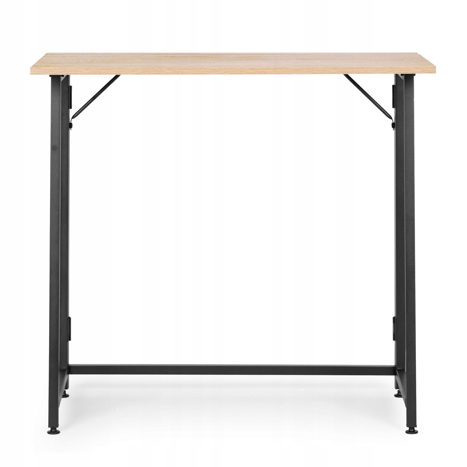 - Składany mechanizm nóg został zaprojektowany z myślą o szybkim użytkowaniu i oszczędności miejsca. Solidne zawiasy umożliwiają łatwe złożenie biurka na płasko, co pozwala przechowywać je nawet w bardzo wąskich przestrzeniach.