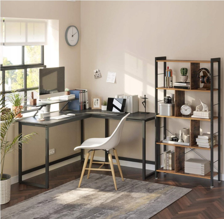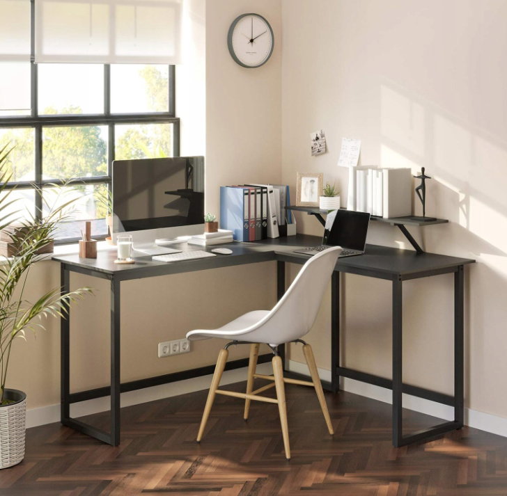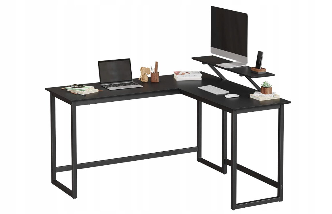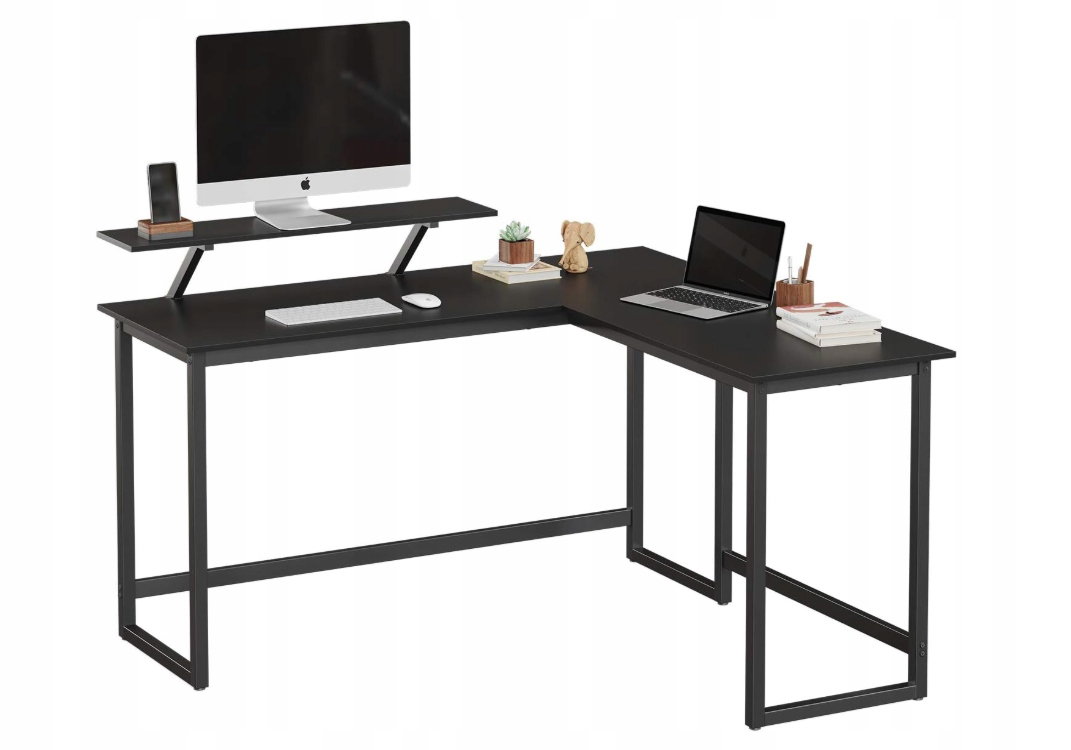 - ✴️Trochę bardziej praktyczne: To stylowe, czarne biurko komputerowe ma nie tylko urzekający kształt litery L i pasuje do każdego rogu, aby zaoszczędzić miejsce, ale jest również wyposażone w praktyczny stojak na monitor o wymiarach 20 x 90 cm, który można zamontować w dowolnym miejscu wzdłuż krawędzi stołu