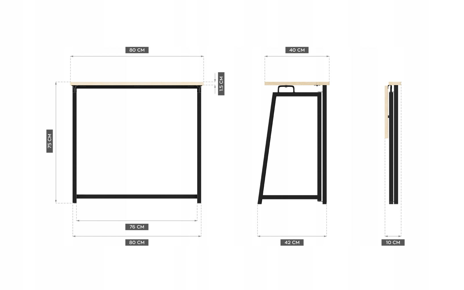 To lekkie, składane biurko w minimalistycznym stylu łączy funkcjonalność z nowoczesnym designem. Idealne do małych mieszkań, dzięki możliwości szybkiego składania i praktycznej półce po złożeniu.