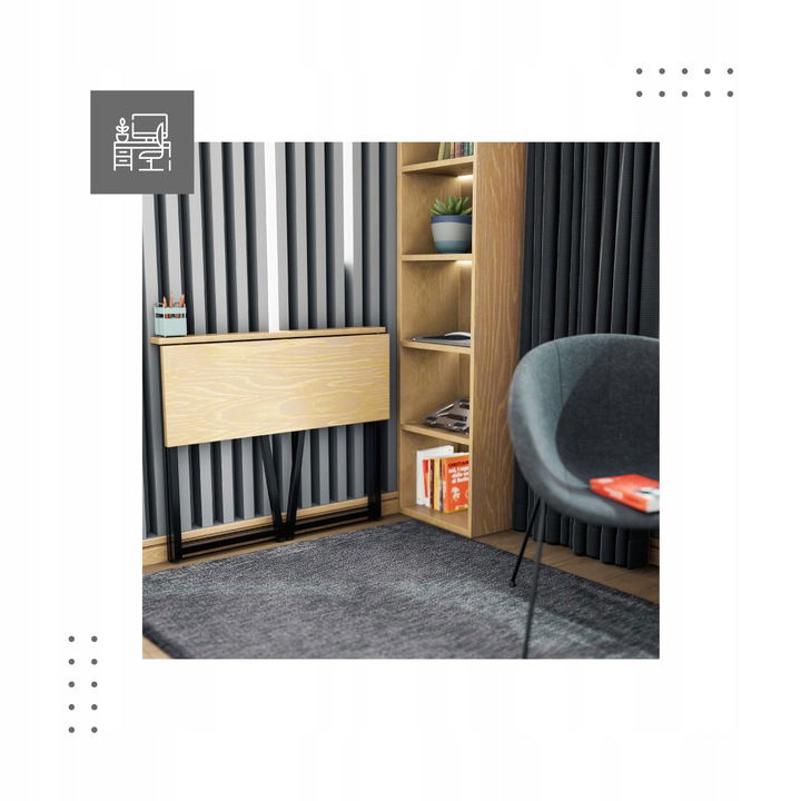 - Praktyczna półka: Po złożeniu biurko może służyć jako półka do przechowywania książek, roślin, ozdób itp.