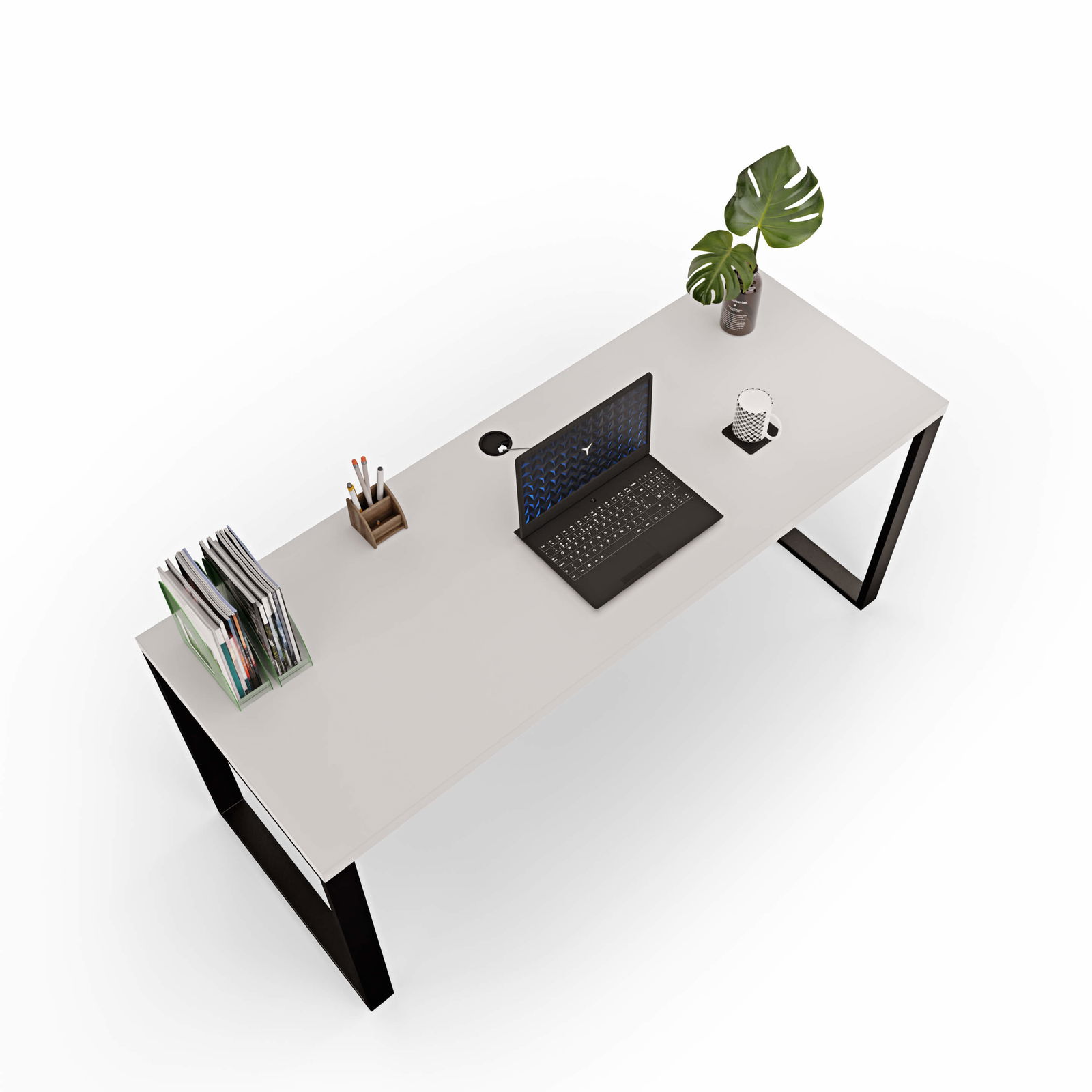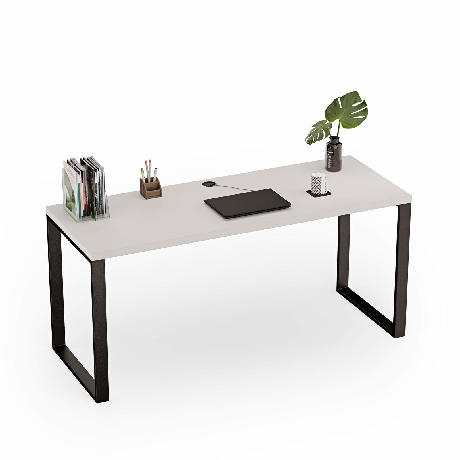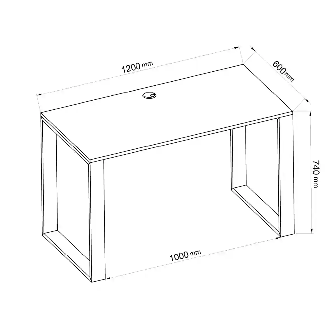 Przepust kablowy – okrągły przepust PCV o średnicy 58 mm ułatwia organizację kabli, utrzymując porządek na biurku.
