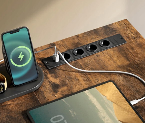 Biurko z gniazdkami elektrycznymi 150 x 120 cm VASAGLE LWD095K01