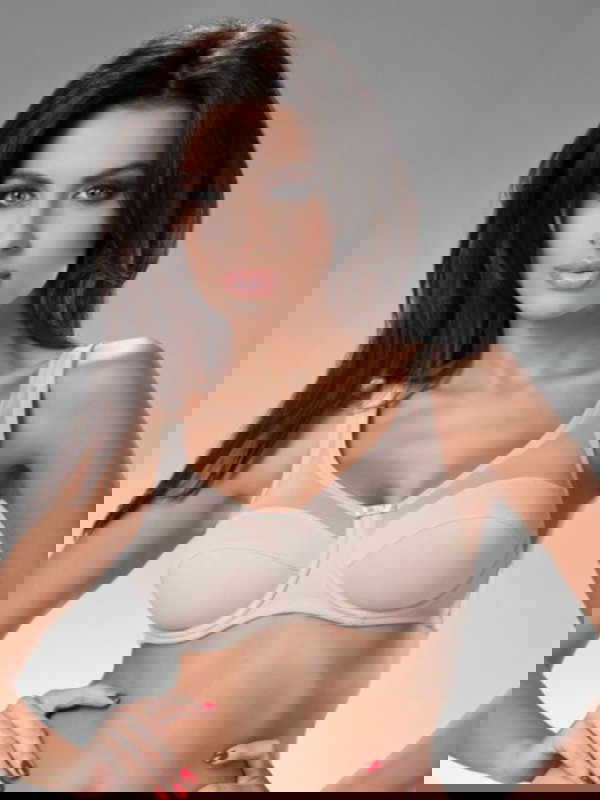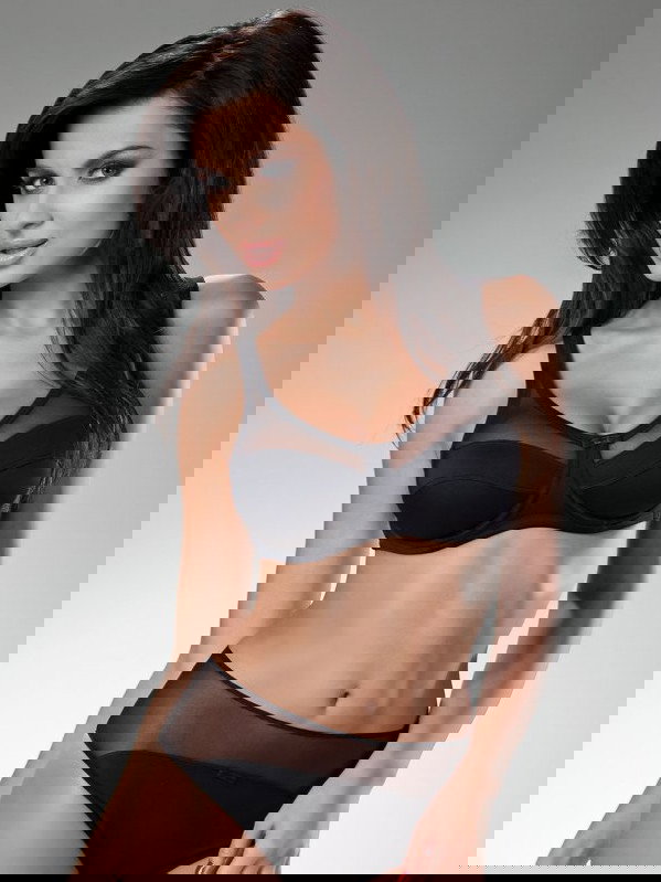 Model miękki, wykonany z gładkiej, wysokogatunkowej mikrofibry oraz tiulu o odpowiedniej wytrzymałości. Dobrze wyprofilowane miseczki, od wewnątrz pokryte 100% bawełną. Konstrukcja oparta na płaskich szwach i boczkach odpowiedniej wysokości. Biustonosz posiada 3 stopniową regulację obwodu. Wygodne ramiączka podszyte miękkim surowcem, przedłużone częścią do regulacji oraz komfortowe, metalowe fiszbiny.
