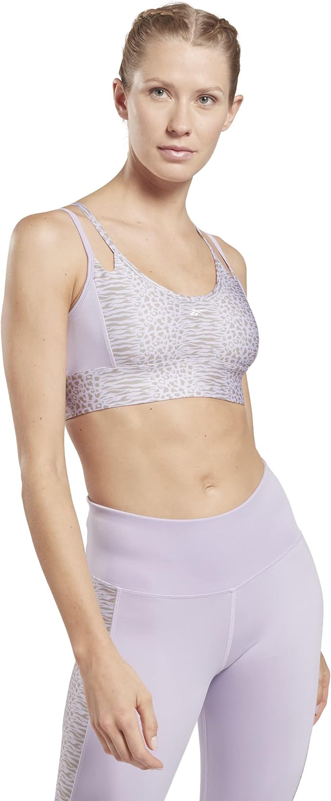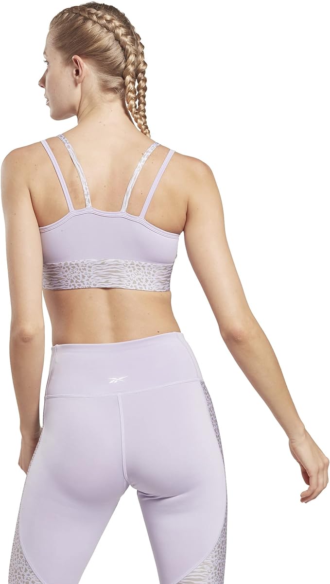 Biustonosz sportowy z kolekcji Reebok. Model z niskim wsparciem, wykonany z materiału z właściwościami szybkoschnącymi. - Linia [REE]CYCLED to produkty wykonane w conajmniej 30% z materiałów z recyklingu. Do produkcji nie użyto żadnego nowego, nieprzetworzonego wcześniej poliestru. - Technologia Speedwick zawarta w materiale doskonale odprowadza wilgoć z powierzchni skóry, zapewniając uczucie suchości i chłodu podczas aktywności. - Dzianina, z której wykonano ten model jest miękka, elastyczna i dobrze dopasowuje się do sylwetki. Zastosowany splot typu interlock powoduje, że materiał jest dwustronny i nie prześwituje nawet w przypadku jasnego koloru. - Model z niskim wsparciem przeznaczony do aktywności o niskiej intensywności takich jak joga, pilates lub spacer. - Nieregulowane ramiączka nie zsuwają się z ramion zapewniając komfort podczas aktywności. - Elastyczna, niepowodująca ucisku listwa u dołu zwiększa podtrzymanie biustu i pozwala na odpowiednie dopasowanie do ciała. - Płaskie szwy chronią skórę przed otarciami i podrażnieniami oraz zapewniają wysoki poziom komfortu użytkowania podczas aktywności. Skład: 91 % Poliester z recyklingu, 9 % Elastan