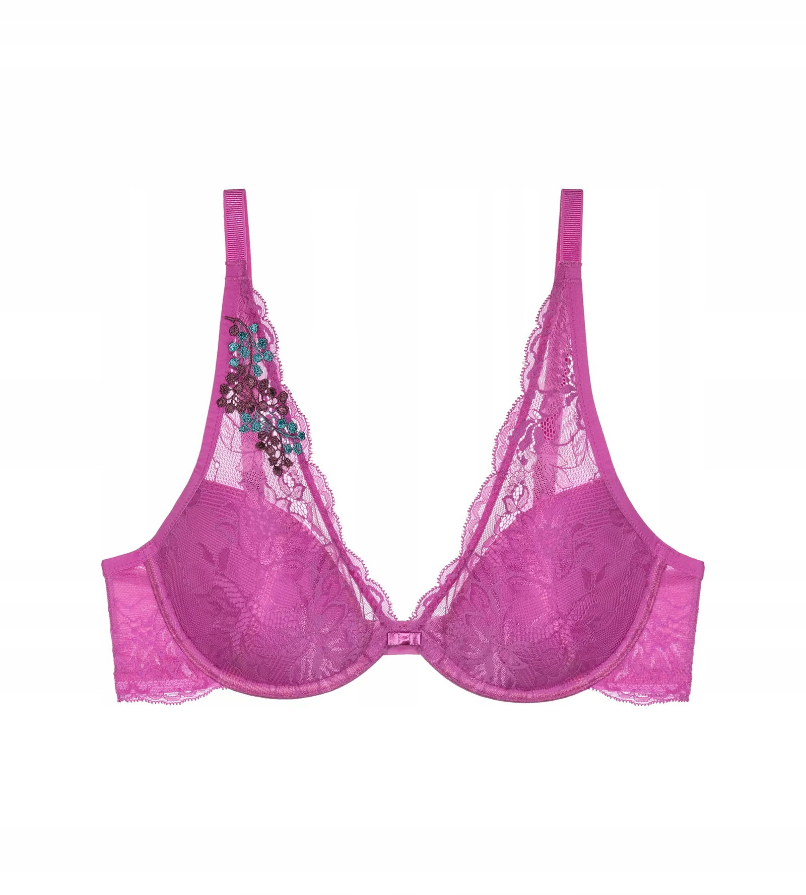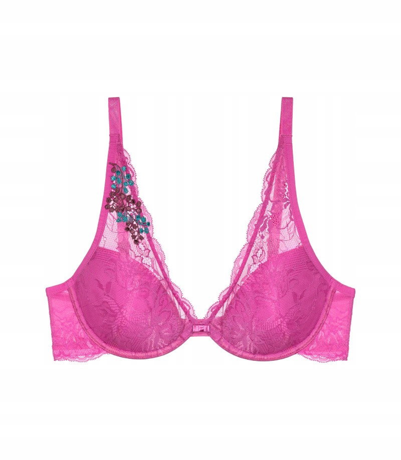 - Wąskie łączenie między miseczkami zmysłowo eksponuje biust.