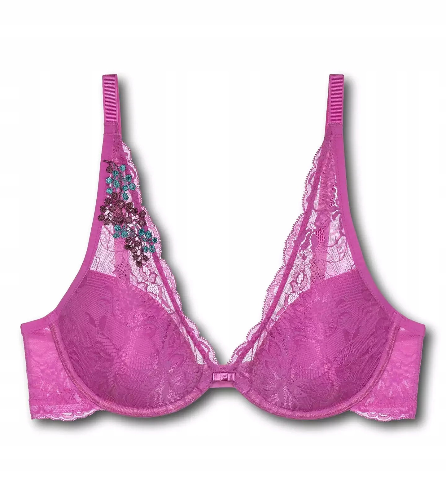 - Miseczki oraz ramiączka pokryte koronką z kwiatowym motywem.