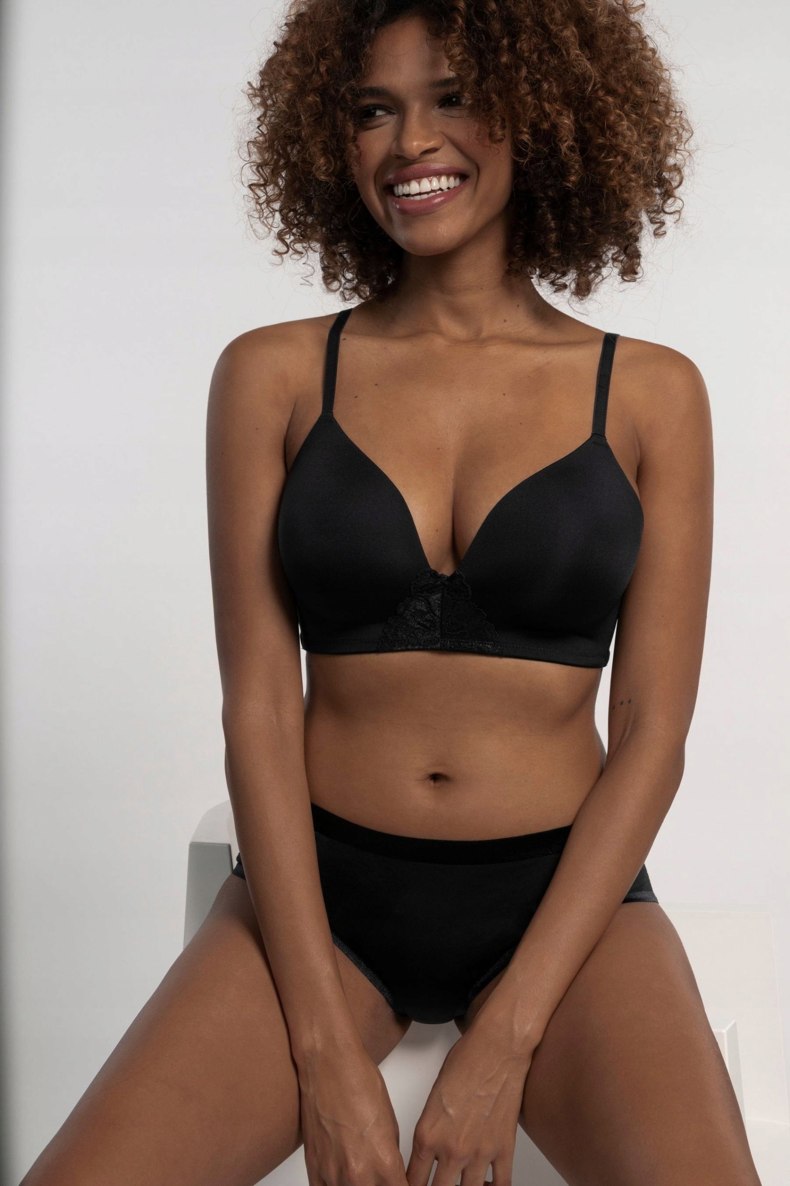 Biustonosz przeznaczony na delikatny biust, posiadający usztywnione miseczki bez fiszbin. Po bokach obwodu znajdują się elastyczne podpory stabilizujące obwód. Wyższy karczek i szersza, anatomicznie wyprofilowana listwa piersiowa stanowią dodatkowe wsparcie dla biustu. Bardzo wygodny model, delikatny dla ciała.