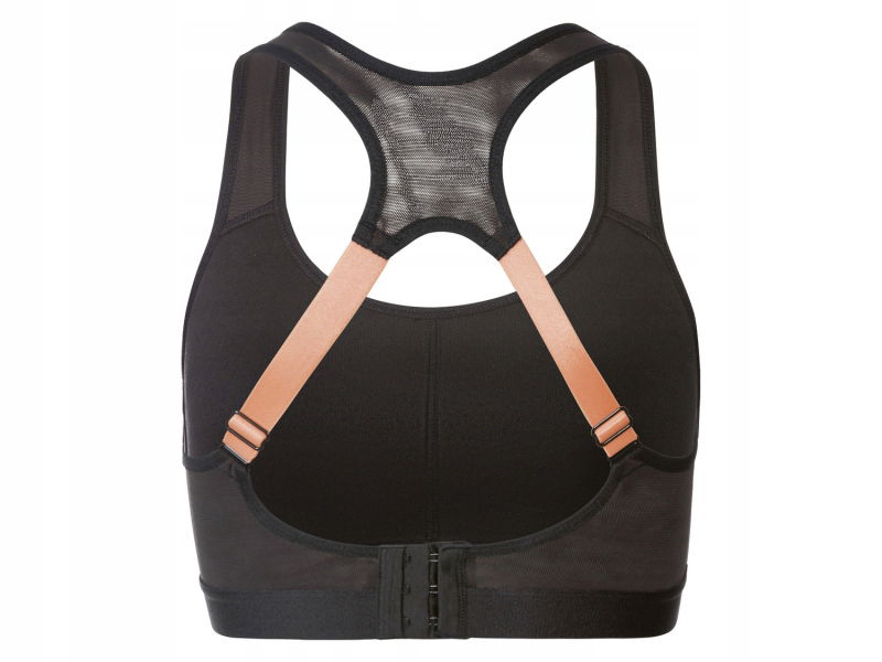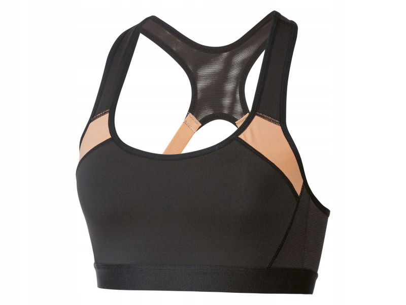 Oryginalny sportowy biustonosz CRIVIT w rozmiarze M (40/42), kolor czarny. Idealny do aktywności fizycznej – zapewnia stabilizację, wygodę i świetne dopasowanie bez uciskania.