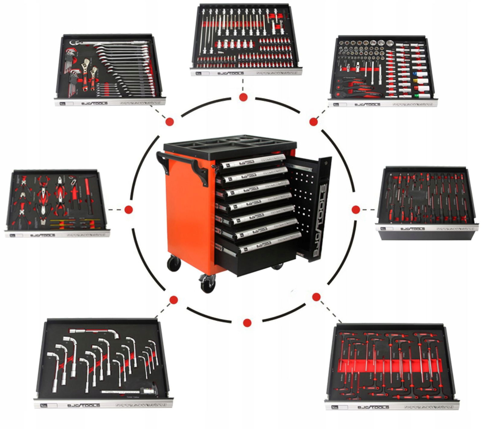 BJC SZAFKA NARZĘDZIOWA WÓZEK WARSZTATOWY 298 EL KLUCZE ZESTAW KLUCZY PROFI