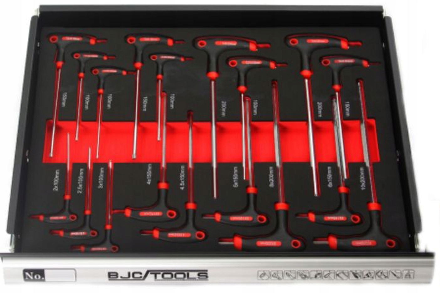 - Zestaw kluczy imbusowych 6-kątnych 18 szt. : 2*100, 2.5*100, 3*100, 4*150, 4.5*150, 5*150, 6*150, 8 *200, 10*200, T10*100, T15*100, T20*100, T25*150, T27*150, T30*150, T40*150, T45*200, T50*200