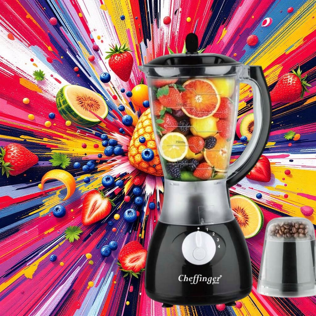 Blender kielichowy Cheffinger o mocy 1000W to wydajne urządzenie do szybkiego rozdrabniania i mieszania produktów spożywczych. Posiada dodatkową funkcję mielenia kawy oraz innych produktów.