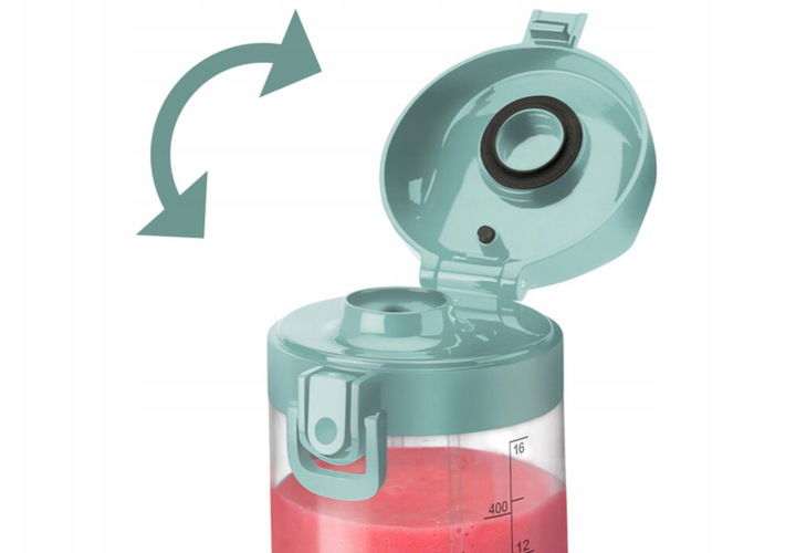 - W zestawie znajduje się unikatowa, szczelnie zamykana pokrywka, dzięki której podróżowanie z blenderem jest o wiele wygodniejsze i bezpieczne.