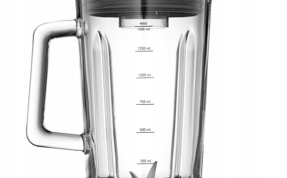 - Wysokiej jakości dzbanek z hartowanego szkła jest odporny na zarysowania i zmiany temperatur. Możesz w nim miksować zarówno lodowate napoje, jak i gorące zupy.
