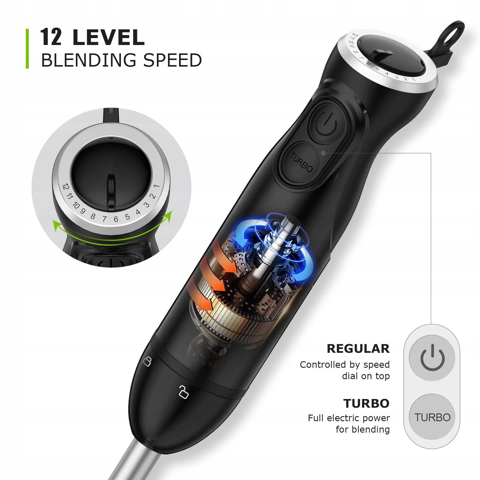 - 12 prędkości + tryb Turbo dla maksymalnej mocy.