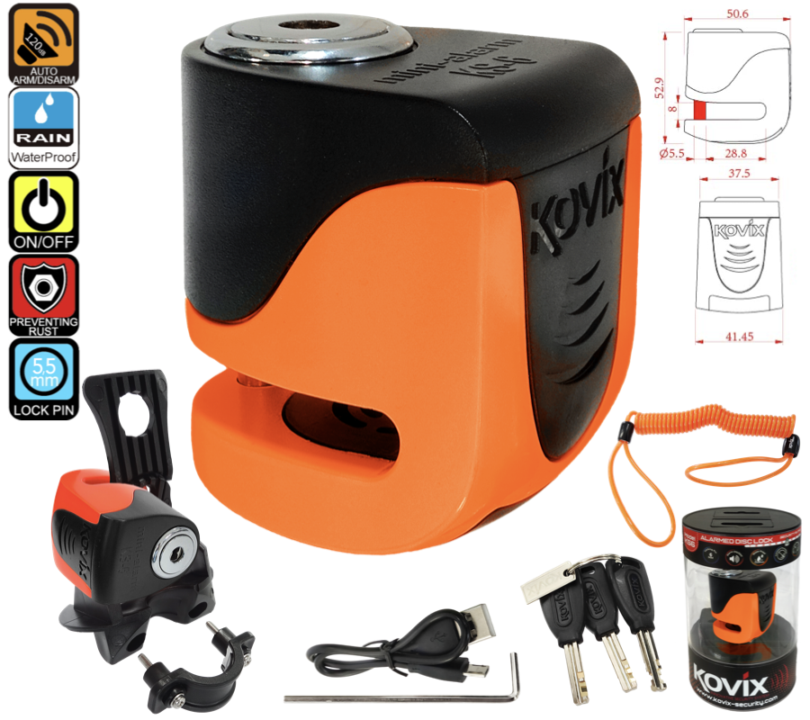 Blokada tarczy hamulcowej z alarmem KOVIX KS6 pomarańczowa - BTHAKKVKS6O