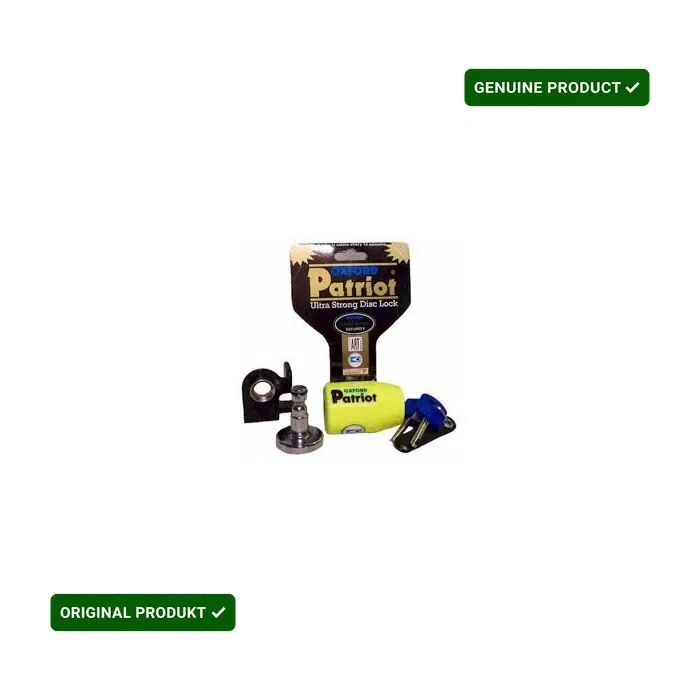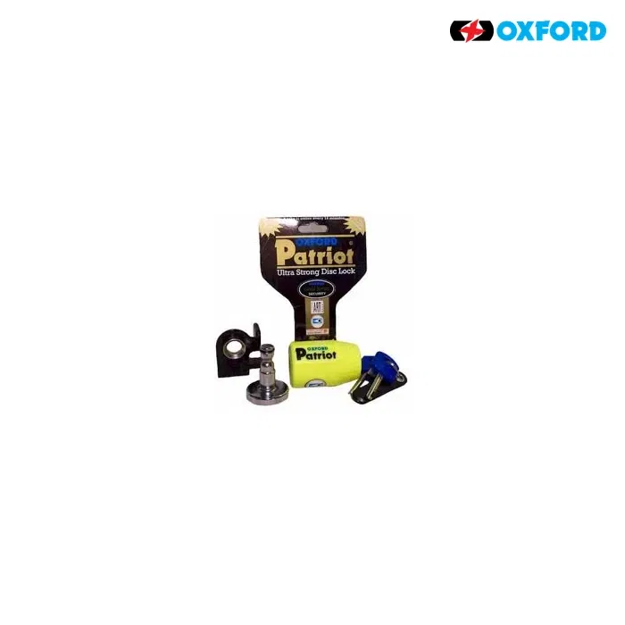 Kompaktowa i niewielka konstrukcja blokady antykradzieżowej na tarczę hamulcową Oxford Patriot umożliwia łatwe przenoszenie jej na motocyklu, w torbie, a nawet w kieszeni. Produkt posiada szeklę o średnicy 14 mm i jest oferowany w wersji z krótką lub długą szeklą. Wersja z długą szeklą idealnie nadaje się do zastosowania jako blokada łańcucha. Wariant z krótką szeklą, zaprojektowany głównie jako blokada tarczy, jest natomiast wyposażony w uchwyt transportowy z możliwością montażu na rowerze. Skuteczność blokady Oxford Patriot została potwierdzona zarówno w wewnętrznych testach producenta, jak i w niezależnych badaniach, czego dowodem są certyfikaty Sold Secure Powered Cycle GOLD, ART 4*, SBSC oraz FG.